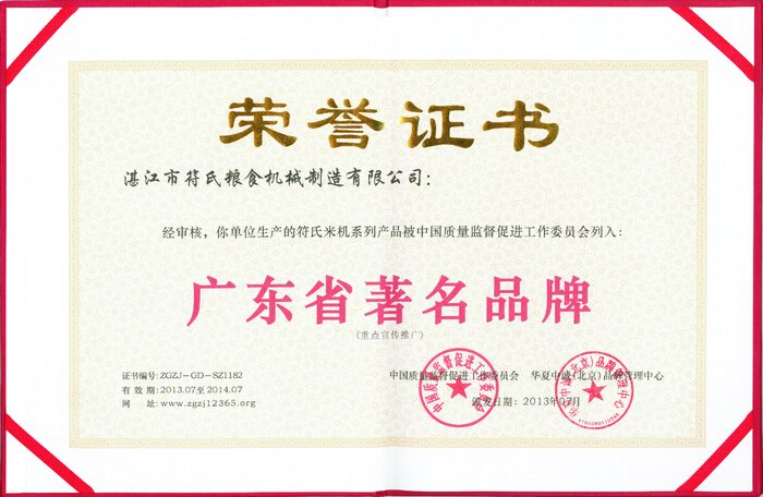 3 2013年被授予“符氏米機(jī)系列產(chǎn)品被中國(guó)質(zhì)量監(jiān)督促進(jìn)工作委員會(huì)列入:廣東省名優(yōu)產(chǎn)品”榮譽(yù)證書(shū)